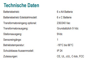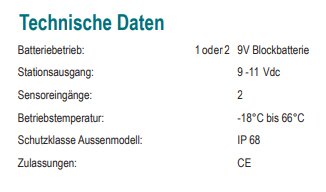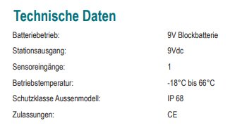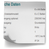 IP68, Material: ABS und EPDM, Batteriebetrieb, 9VDC